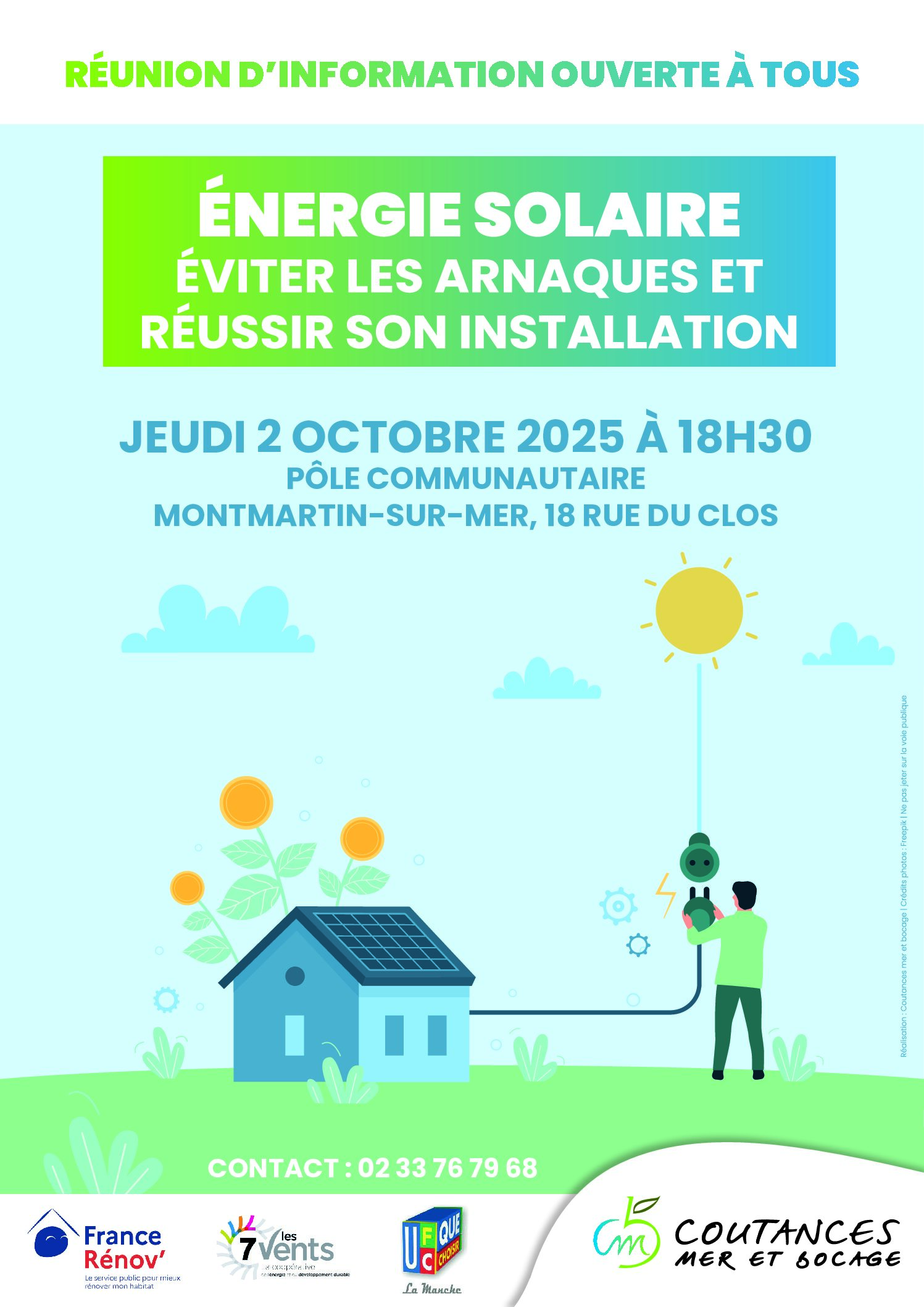 Dans la Manche, Sont organisés par des collectivités 2 rendez-vous auxquels participe l’UFC Que Choisir, pour la promotion du photovoltaïque et les précautions à prendre pour ne pas se faire « arnaquer » :