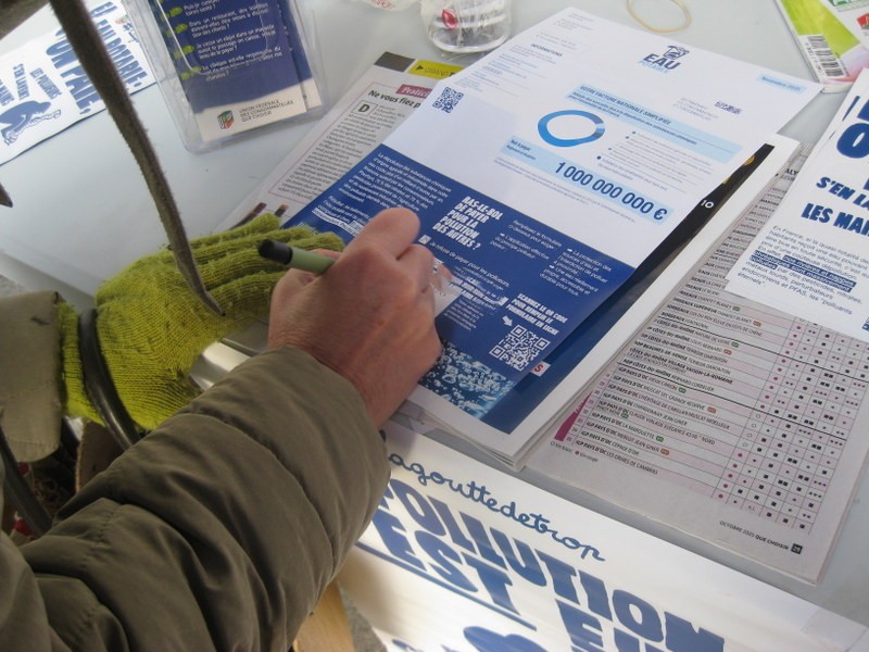 Ils ont invité les consommateurs à signer une facture symbolique d’1 milliard d’euros, représentant les surcoûts que les consommateurs paient collectivement chaque année pour la dépollution, facture à envoyer à nos décideurs.